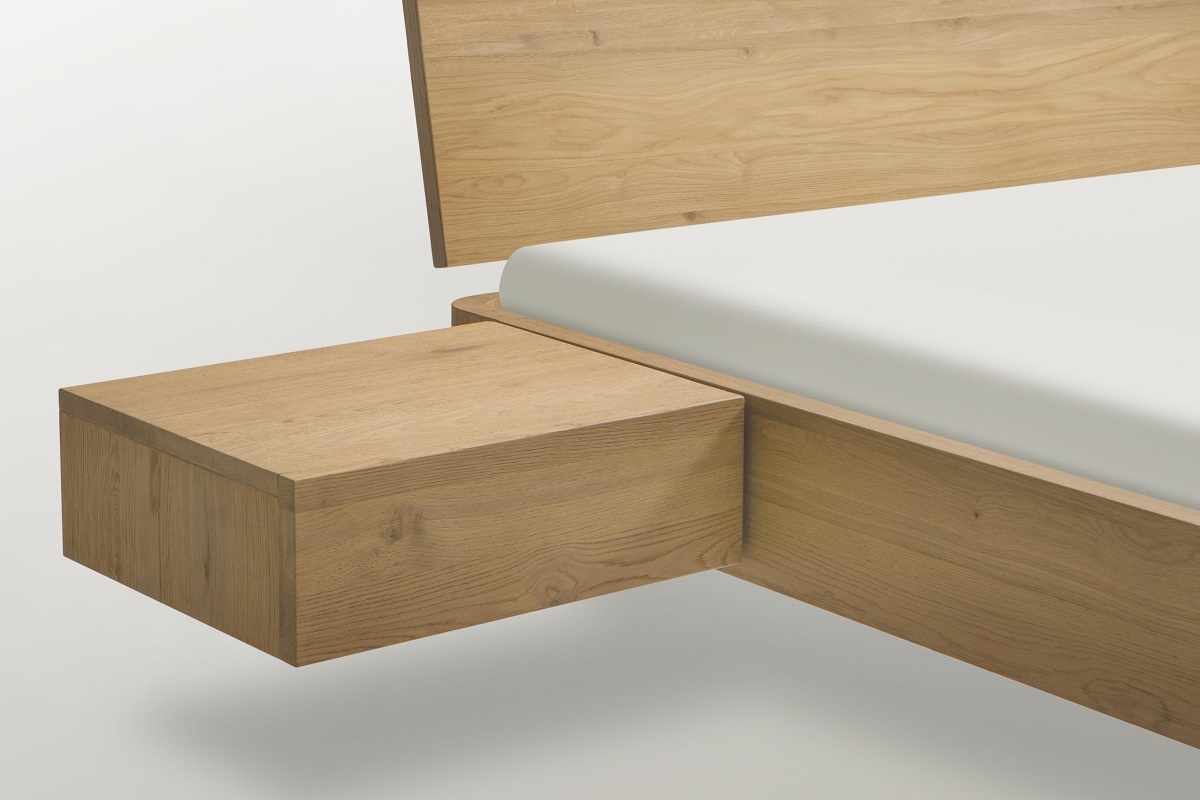 "Schwebender" Nachttisch mit Schublade. Montage Links oder Rechts am Bett möglich. Design ohne sichtbare Grifffe