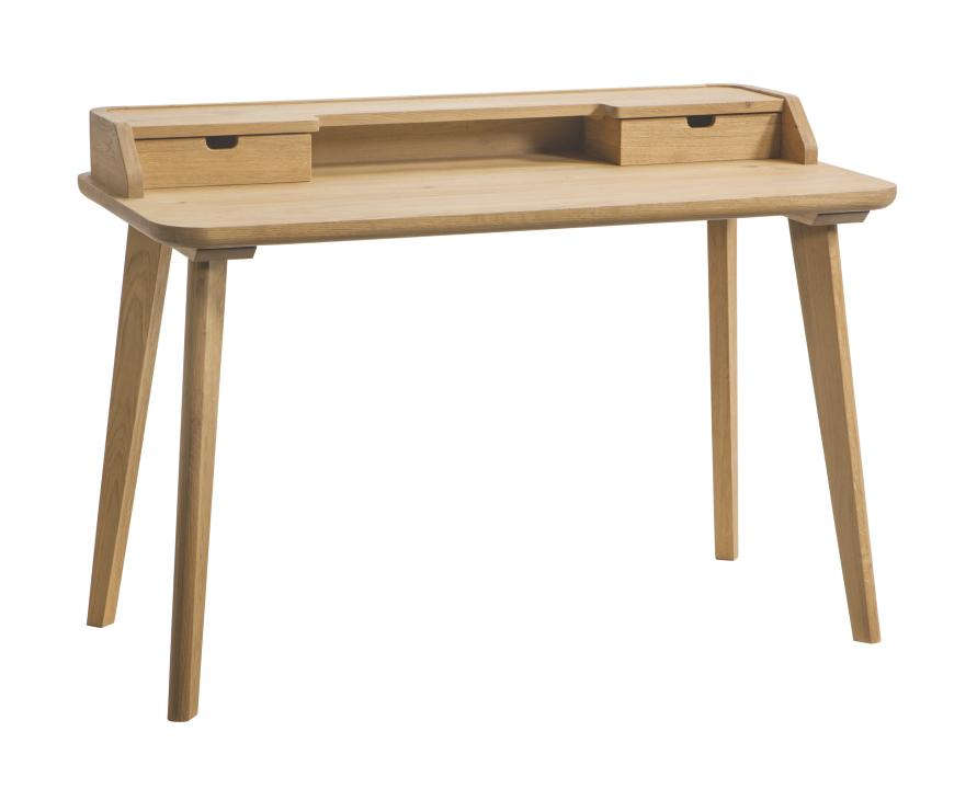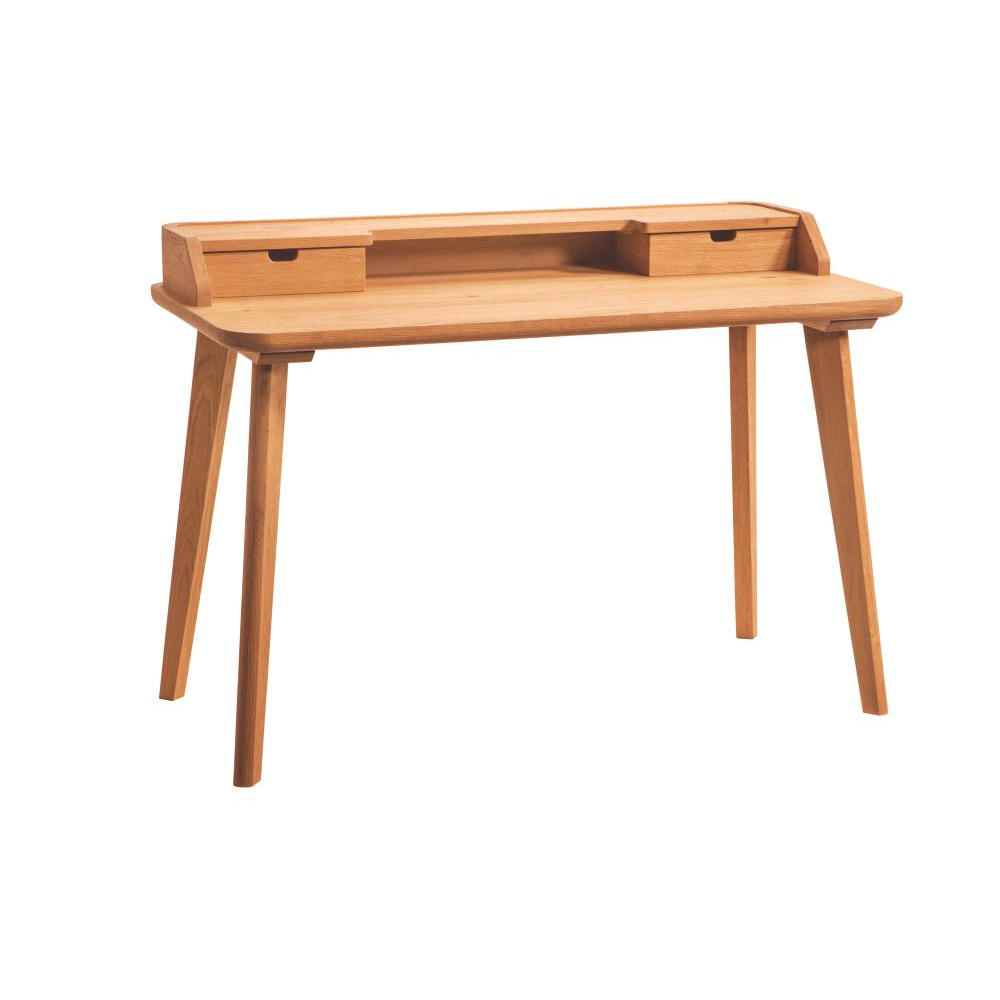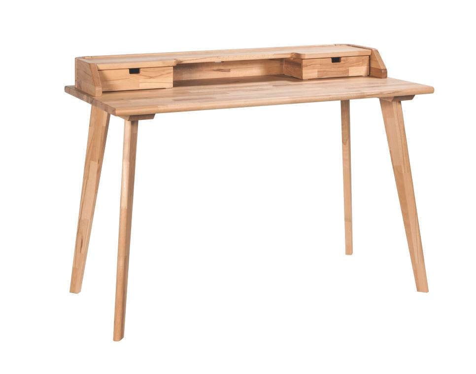 Schreibtisch aus massivholz mit Erhöhung für Monitor oder o.ä. inkl. 2x Schubladen und Staufach.