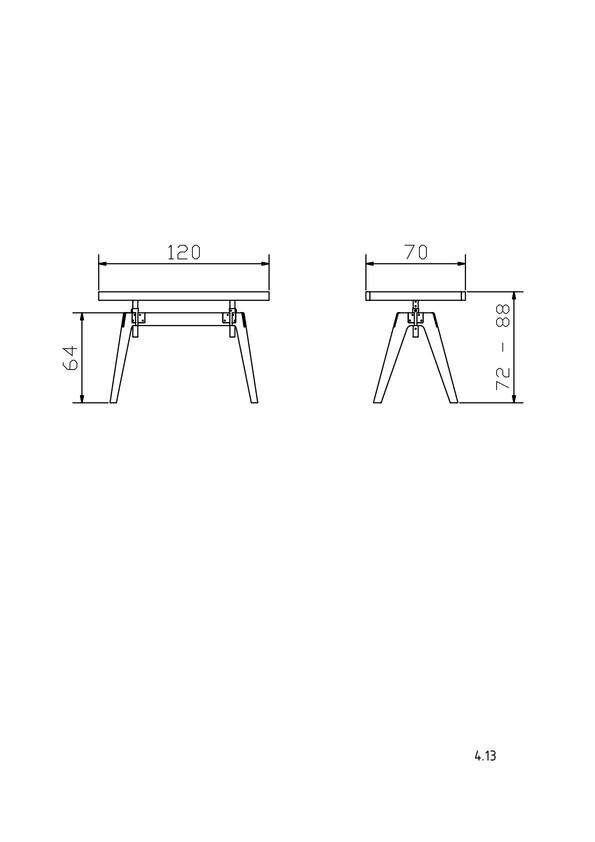 Maße (B x T x H) : 120 x 70 x 72 - 88cm ( Lieferung zerlegt )